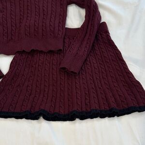 Elegant Burgundy Cable Knit Skirt Set