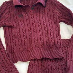 Elevate your casual wardrobe with this elegant burgundy cable knit skirt set. Perfect for a stylish and comfortable look.