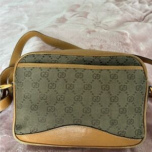 Authentic Gucci Tan and Brown Vintage Crossbody Bag - Rare
