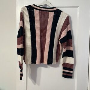 Express Pink Retro Strip V neck Sweater