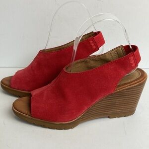 Sorel 9 AFTER HOURS Slingback Open Toe Suede Wedge Sandals NL2858-691 Red 7.5