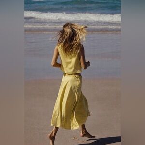 Sample color. It’s an amazing muted/butter yellow color. New without tag. Smoke free home
