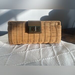 Perfect sized wicker clutch design with a sleek gold clasp.