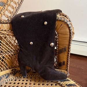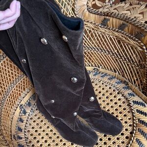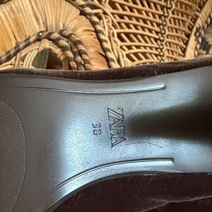Zara Brown Heeled Boots with gold accent beautiful luxurious velvet knee high 38