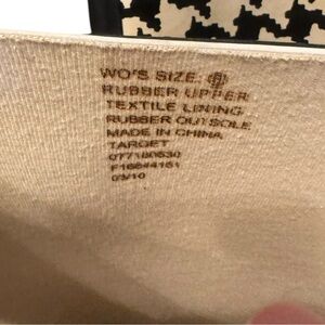 Merona Black and Cream Houndstooth Women's Rain Boots size 6