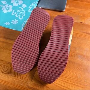 They only faint signs of wear with a light gray shadow stain on suede of heel (pictured), some very minimal usage marks near toe. Clean and nice looking with vivid color and fit. Materials & Features: Suede, Leather trim, Recycled materials, OrthoLite footbed, Raw-edge foam tongue, Rippled rubber outsole, Serrated tread.