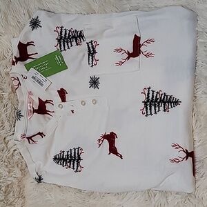 This cozy t-shirt adorned with enchanting deer and pine print ensures nights of softness and tranquility for a dreamy sleep.
