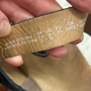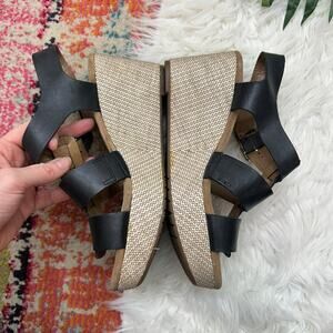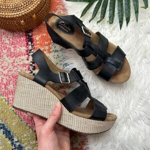 Clarks Artisan Black Leather Platform Wedge Sandal 8W 8 WIDE Ankle Strap