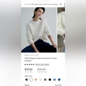 Quince Classic Fisherman Ivory Crew Neck Sweater small