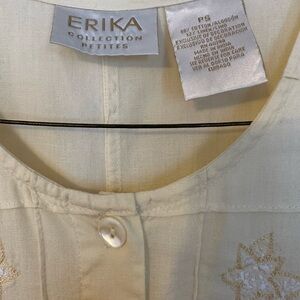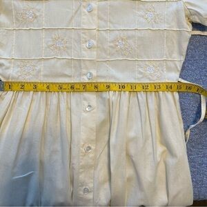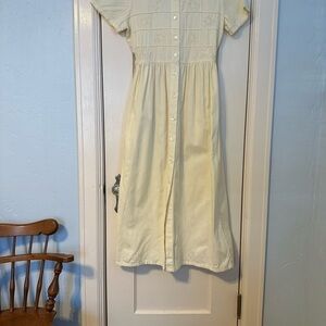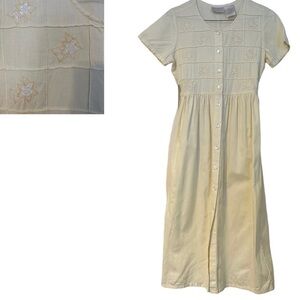 Vtg. Erika Dress Pastel Yellow Linen Embroidered Cottagecore Scoop Neck Size PS
