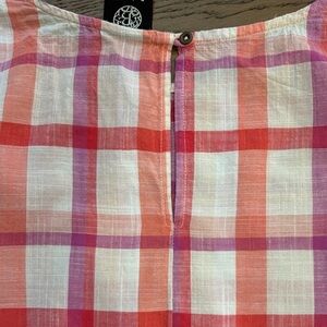 Bobeau Pink Orange White Plaid Blouse Bell Sleeve