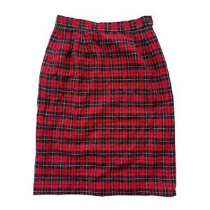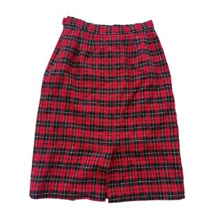 Pendleton Wool Skirt Womens 2P Red Black Plaid Vintage Tartan =Pencil Midi 1980s