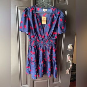 Adorable navy blue dress with a playful cherry print. Perfect for any occasion, this dress from combines style and comfort. #fairy #coquette