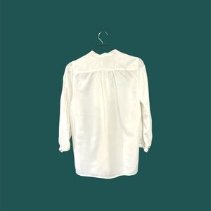 Peak piratecore ivory colored blouse with romantic ruffles and a tie neck. Cotton/viscose blend, machine washable. Button and loop closure. Good condition, no apparent stains or damage.