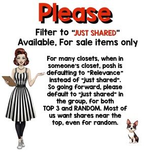 🎸 Rock the Rack Share Group Posher’s choice 3 shares-top 3 or random Filter to “JUST SHARED” “FOR SALE” items Group closes at 12pm EST Share between: 6am EST-Midnight your time @saucyandsassy @dananealdesigns @newyorkchic @luvmyqh6 @weimaranermom @summerpicks @she_is_more @southpawsfinds @retirementready @nicolepischke @beyoutifulheart @princesutton @sable_on_blond @classylady1111 @cyndlyn @miss_sunshine79 @ivorycloset885 @dealdivadeals @thing2and3 @pratrat @lisamaried @1stolive