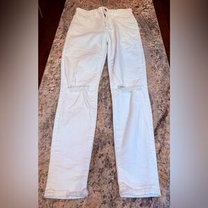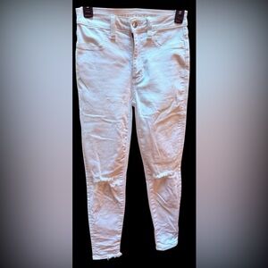American Eagle Super Stretch White Distressed Jeans Size 0 Short Raw Hem Skinny