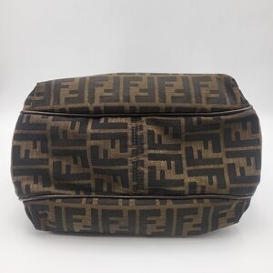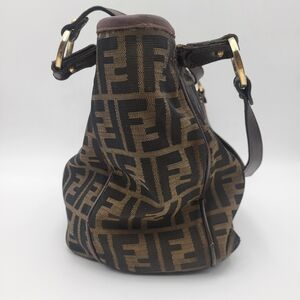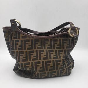 FENDI Shoulder Bag Brown Black Zucca Canvas Leather Authentic..
