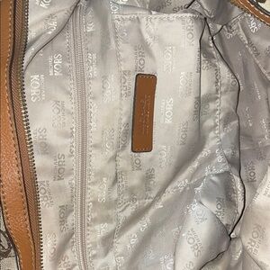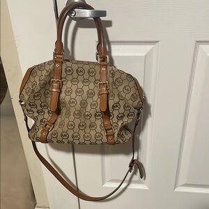 Stylish Michael Kors satchel in a classic brown with signature logo design. Perfect for any occasion.