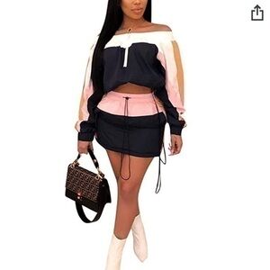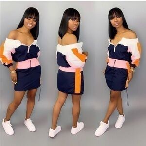 Color Block Off The Shoulder Skirt Set