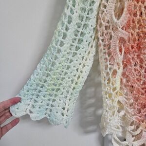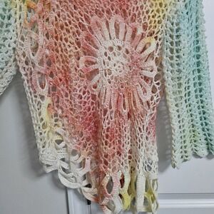 Tempo Paris Womens Large Pastel Crochet Open Knit Floral Pullover Boho Sweater