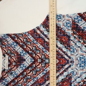 This is an Athleta dress in a size medium. It is red and blue. It does have light pilling all over.