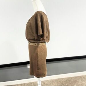 Affliction Bronze Animal Print Mini Dress Edgy Studded Waist Stretch Sz 4 NWT