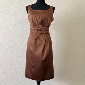 J. CREW SATIN BROWN SLEEVELESS MIDI DRESS size 10P