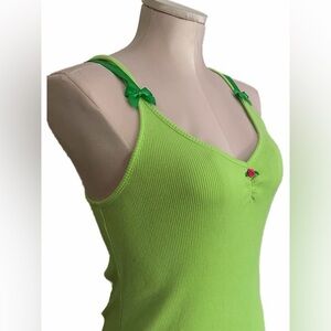 EUC Vintage VS Pout Lime Green Ribbed Fabric Nightgown dress Lollipop print trim