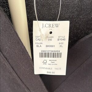 NWT, Sz. XL, J. Crew Women's Black Polo V-Neck 100% Cotton Sweater
