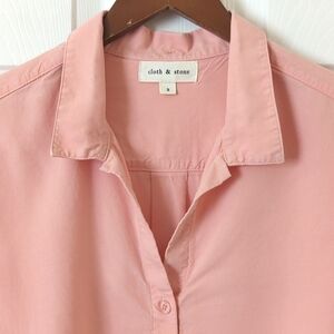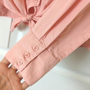 Cloth & Stone Classic Tencel Long Sleeve Button Down Tie Front Top Salmon Pink S