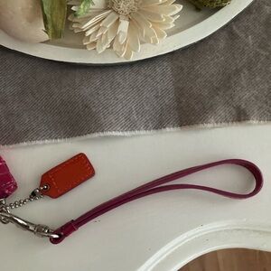 Coach Hot Pink Wristlet Signature Jacquard Wristlet Clutch with Patent Trim and Orange Satin Interior