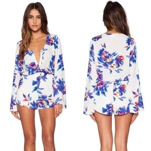 Show Me Your MuMu Red Rocks Romper in Petal Paint - White and Blue - Size S