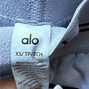 Stylish ALO Yoga leggings for kids. White with black piping. Ideal for active wear.
