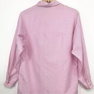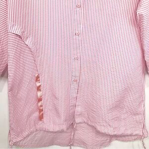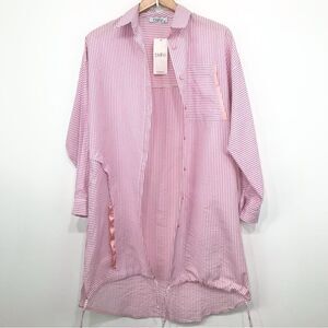 Bislife Pink White Candy Stripe Button Up Drawstring Tunic Top, Mini Dress NEW