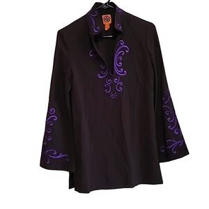 Preowned Tory Burch Brown Wool Tunic Top with Embroidered Details size 4. Tunic is in excellent condition.