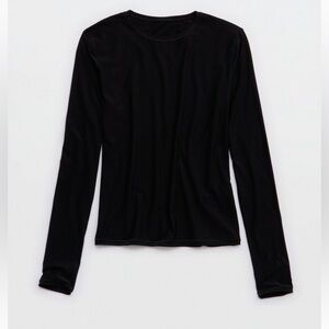 NWT Aerie SMOOTHEZ Long Sleeve Crew T-Shirt in True Black Sz XS.