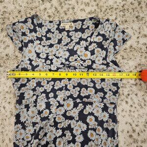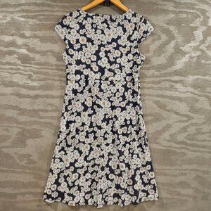 Toad & Co. SZ S Peasant Spring Navy Blue Daisy Print Cap Sleeve Fit Flare Dress