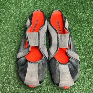 RARE Diesel Deadstock KEVLIH Women Gray Orange Sneakers Mules Vintage Sz 8.5 NEW