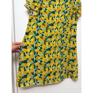 Alice + Olivia Jem Mini Shirt Dress Lemon Squeeze Print Floral Fruit Blue S
