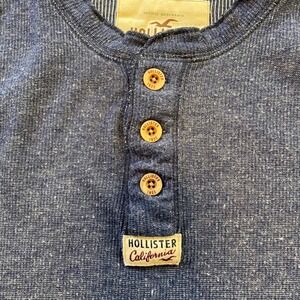 Hollister Mens Blue Waffle Knit Large Henley Shirt Long Sleeve Large Logo Patch