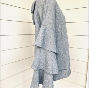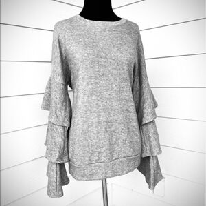 Elegant Heather Gray Ruffle Sleeve Sweatshirt