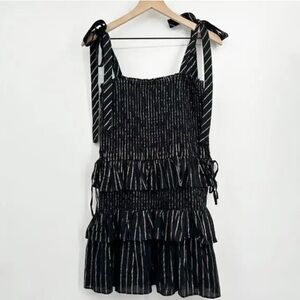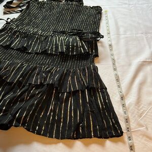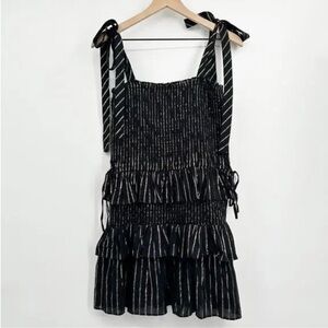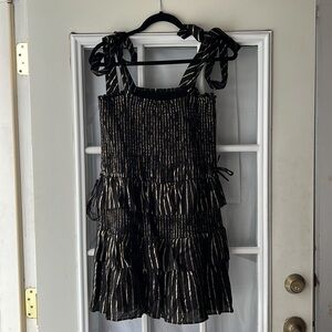 House of harlow 1960 - MD black and gold ruffle mini dress w/tie straps-holiday