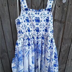 Tuckernuck Floral Blue and White Sleeveless Dress