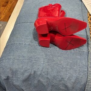 Step out in style with these vibrant red cowboy boots. Perfect for adding a bold touch to any outfit.