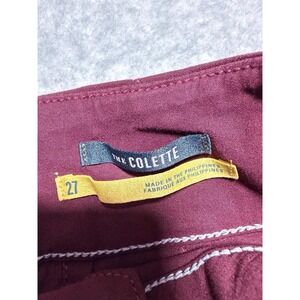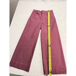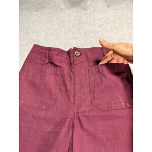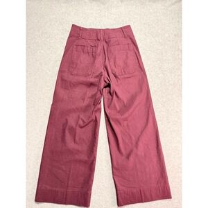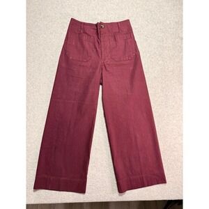 The Women's Burgundy Maeve by Anthropologie Front Pockets Wide Leg Pants are perfect for casual occasions in the spring. These pants feature a flat front, high rise, and wide-leg style, offering both comfort and style. With front pockets for added functionality, these pants are machine washable for easy care. The rich red color adds a pop of color to any outfit, making them a versatile wardrobe staple for women size 27.