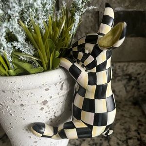 Mackenzie-Childs 🖤🤍 Courtly Check Funny Bunny Pot Hanger 🖤🤍 NIB! Last one.