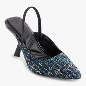 Karl Lagerfeld Women's Tweed Slingback Heels - Black and Blue