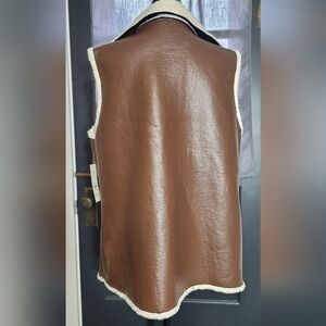 No Boundaries Women's Faux Leather Vest with Faux Fur Lining Brown Size L / XL