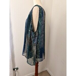 CJ Banks Womens Size 2X Teal Blue Mixed Print Sleeveless Top Eclectic Artsy