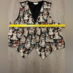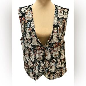 Vintage Women's Casual Corner Tapestry Snowman Button Front Grandma Vest 2X USA.